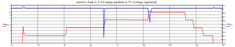 Voltage regulation at 5V with 1,2,3,4 lamps in parallel: